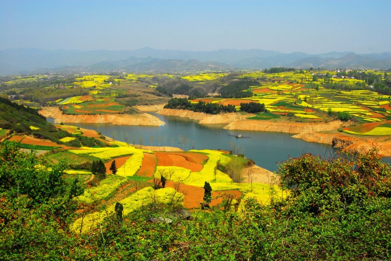 田野间盛开的油菜花,田埂上开得正好的桃花,纤细碧绿的垂柳,以及远远能看到的农家小院和青山绿树,共同构成一幅色彩明艳的画。无论你是路过,还是专程探访,都会被这抹艳丽的风景给迷醉,连心底的阴郁也烟消云散,能感受到的只有身处花田之间,耳边蜜蜂振翅嘤嘤嗡嗡带来的春天的气息,自然的味道。